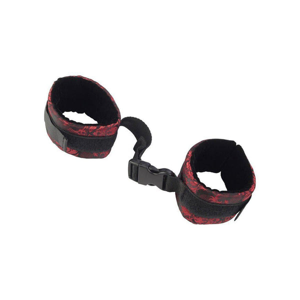 Embrace your adventurous side and relinquish control—or command it—with the Scandal® Control Cuffs. These beautifully designed red and black brocade cuffs set themselves apart with top-quality designer fabric that inspires release of the darkest, naughtiest desires. They boast a soft, plushy, and padded fabric to keep you or your submissive comfortable as they quiver and writhe under your caress.