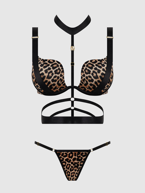 Devon Push Up Bra w/Harness & G-String 3 pc Set Leopard