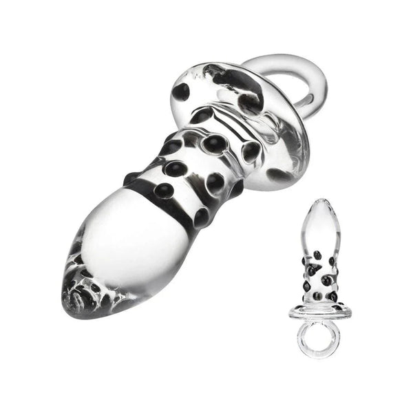 Wide flared head for deep stimulation. Tinted nubs increase blood flow and sensation. Wide base and hi-durability handle for easy retrieval. Fracture-resistant and hypoallergenic, this toy can be easily cleaned. Retains heat and cold for increased stimulation. Compatible with all lubricants.