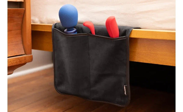 Crafted from fluid-proof, machine-washable Fascinator material, this caddy combines lasting elegance with practicality. Keep your toys, lubricants, massage oils, and other bedroom essentials discreetly hidden yet easily accessible.