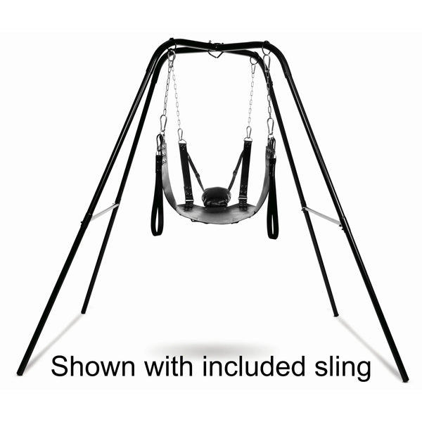 Easy to assemble whenever the mood strikes, this kit includes a sturdy stand, a beautiful sling, and all the chains and clips you need for comfortable, exciting sex! Avoid damage to your walls, doors, or ceiling by hanging your sling on a stand instead! The luxurious leather-lined sling offers full access to your partner while they are suspended in the air, spread open and waiting for you. The adjustable design allows them to lie back and place their feet in the included, but removable stirrups. The padded pillow will cradle their head, with adjustable straps at the head that allows you to raise or lower their upper bodies. When you are done, the swing wipes off quickly and the stand disassembles easily for discreet storage.