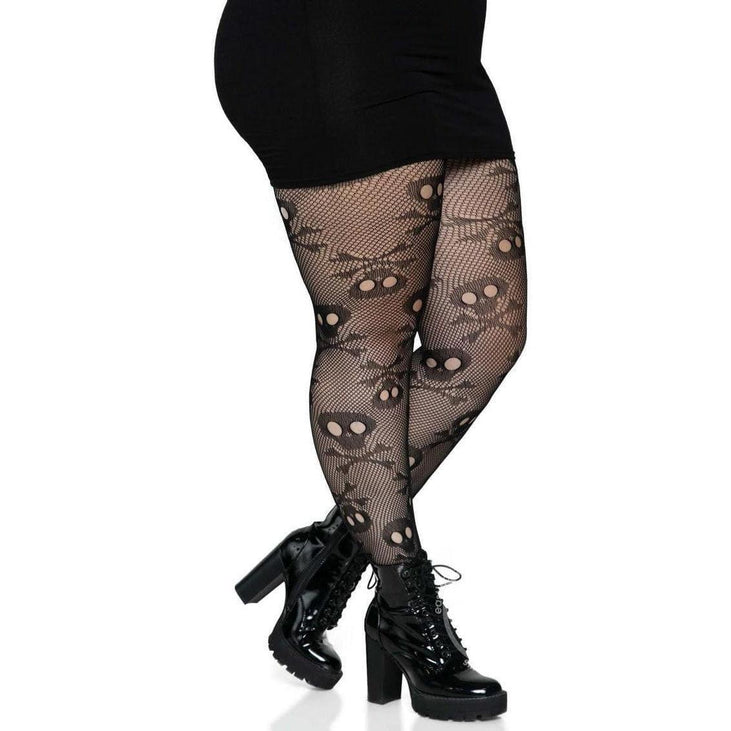 Leg Avenue Pirate Booty Skull Net Pantyhose Black