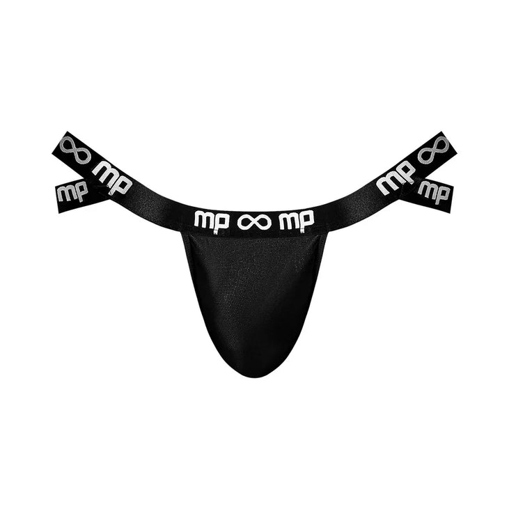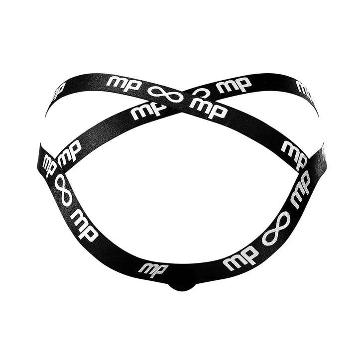 • From the Infinite Comfort collection by Male Power, the Amplifying Strappy Jock with its maximizing pouch, slimming waistband, criss cross rear straps, and butt boosting leg bands flaunt your best assets. Partial rear exposure.