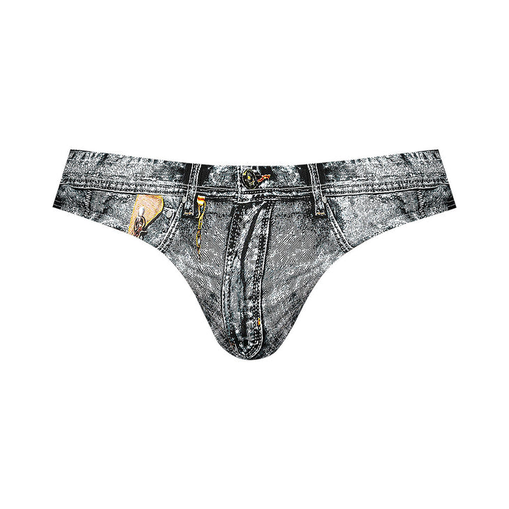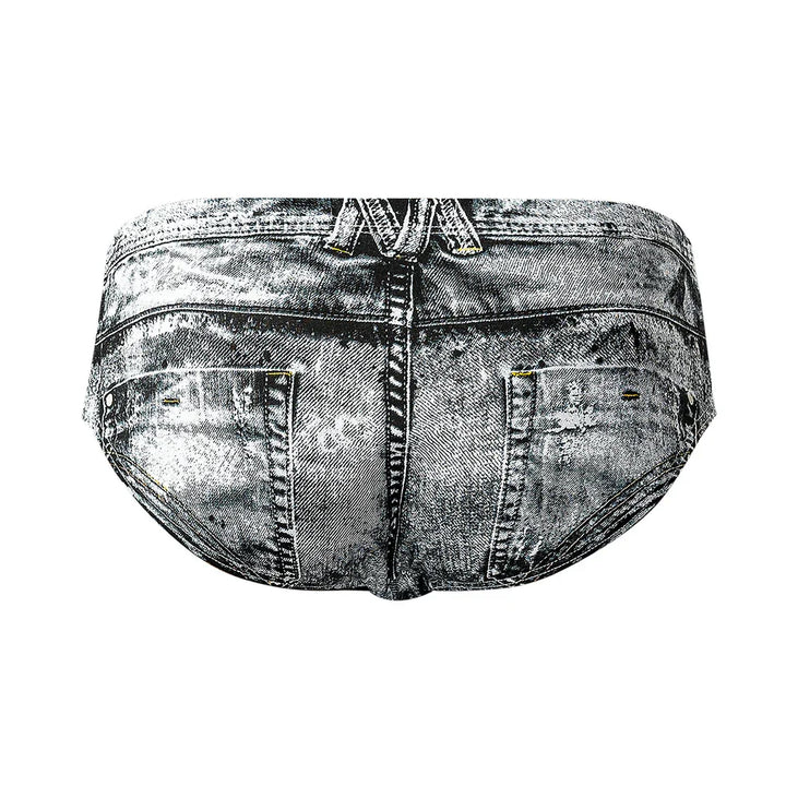 Male Power Dirty Denim Mid-Rise Waist Bikini with Penis Pouch Denim Jean Print
