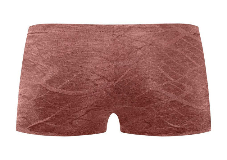 • From the Male Power Inter-Mingle collection this style includes a mini short with a low-cut waist, high-cut legs, a contour pouch and full-rear coverage. Cool stretch poly spandex with an embossed tone on tone print joining both flat and raised graphics throughout.