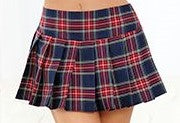 Escante Long Pleated Zipper Side School Girl Skirt Red Plaid