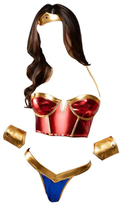 Fantasy Lingerie Play Rope Me In 6-Piece Costume Set Red/Blue