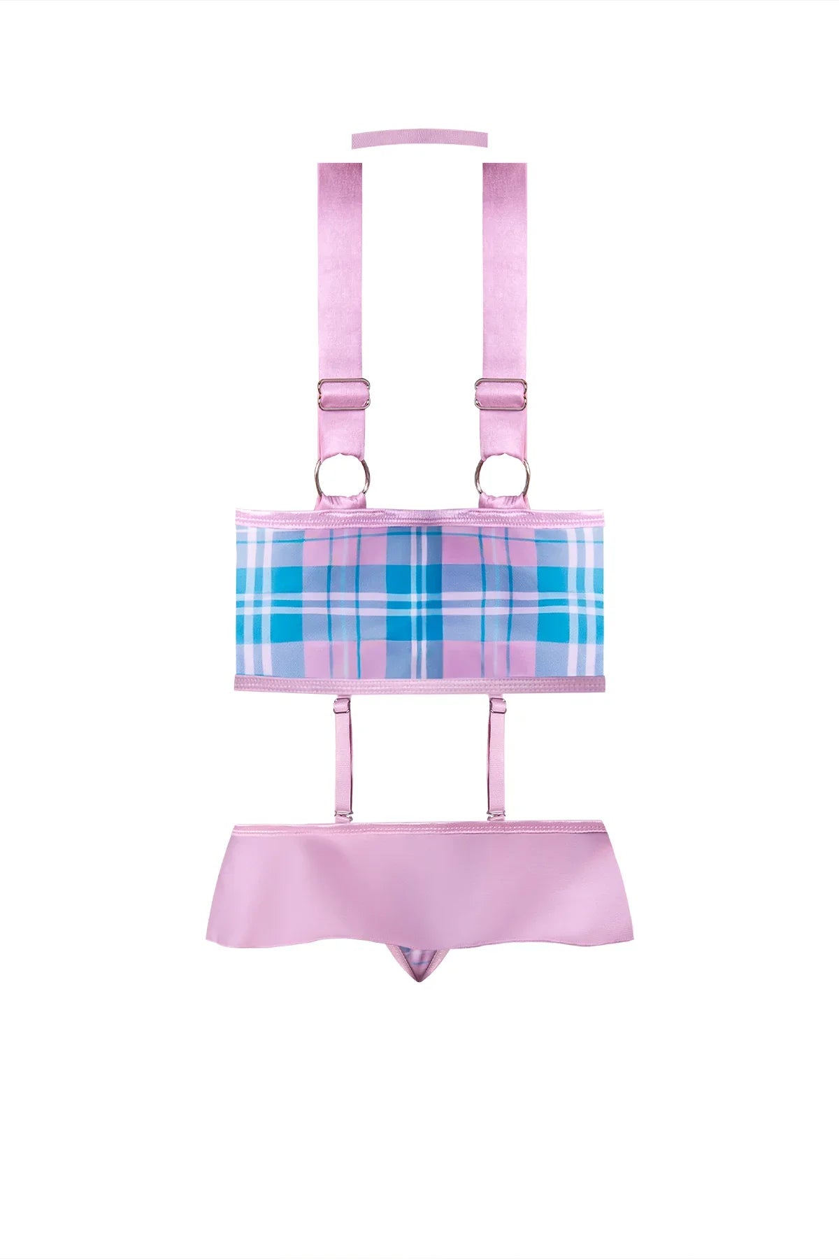 • Bring a touch of playful sophistication to your closet with the Nerdy Nympho Schoolgirl Role Play Costume from Exposed by Magic Silk, designed to captivate and charm. This delightful outfit features a plunging basque with adjustable straps, allowing for a customizable fit that enhances every figure. Paired with an ultra-cheeky panty that includes adjustable and detachable straps, this schoolgirl role play costume offers both versatility and allure. Made from a soft stretch jersey in a classic pink and blue plaid, this costume combines comfort with a timeless schoolgirl appeal. The addition of a tie-back necktie perfectly completes the ensemble, allowing you to fully embrace the fantasy with effortless style. Ideal for role play enthusiasts, this role play costume is crafted to stand out and add a fun twist to any wardrobe. Perfect for themed events, playful scenarios, or simply indulging in a bit of whimsy, the Nerdy Nympho Schoolgirl Role Play Costume is sure to be a fitting choice.