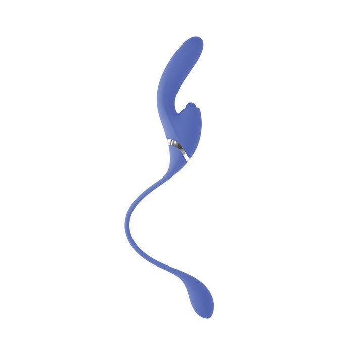• Go all in for pleasure! This unique toy features a gently curved, flexible, thrusting main shaft and a tapping stimulator that's designed to thumpity-thump in multi-speeds right where you want it most. Finally, a long flexible tail finishes with a plump, ergonomic vibrating plug to complete the rapturous experience. All 3 motors are controlled independently with their own buttons at the chunky center base that offers a relaxed grip.
