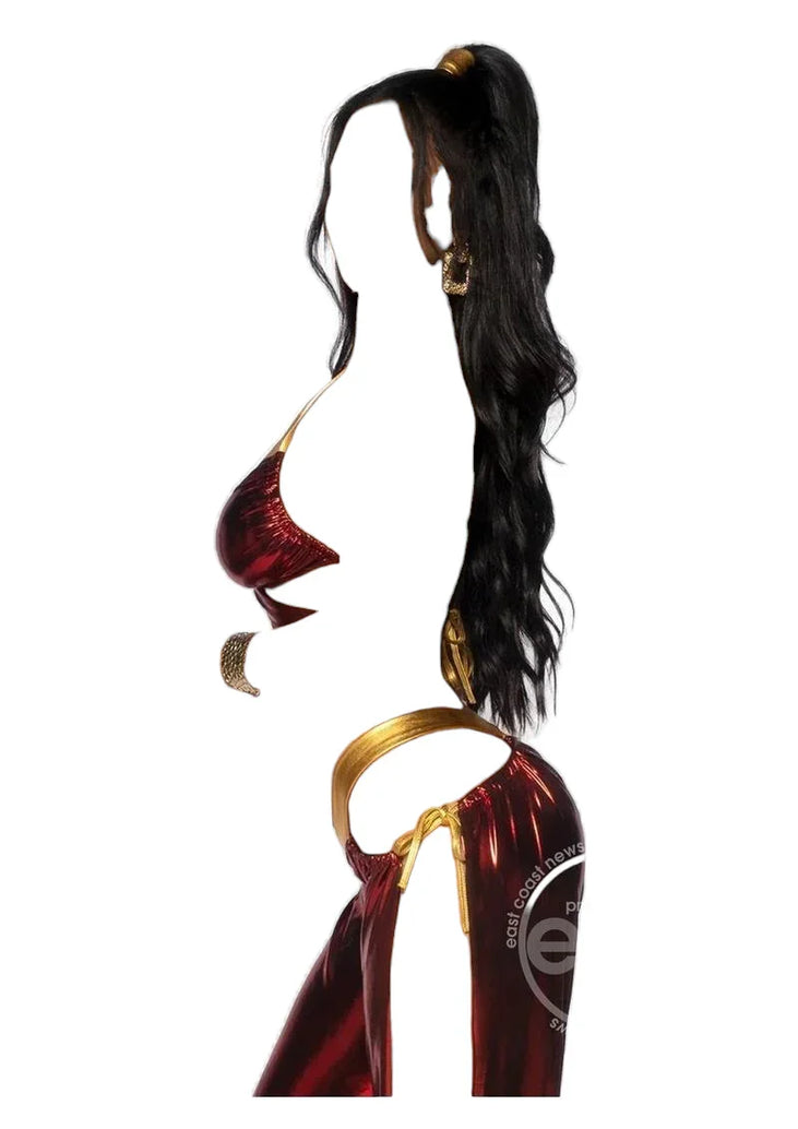 • Being bad has never looked better than in this magical Ruby Desert Princess costume by Leg Avenue. The iconic 90s costume features a luscious lamé bikini top and split leg cut-out harem pants with side ties. This sexy women's Halloween costume pairs perfectly with other cartoon character costumes for an epic group costume.