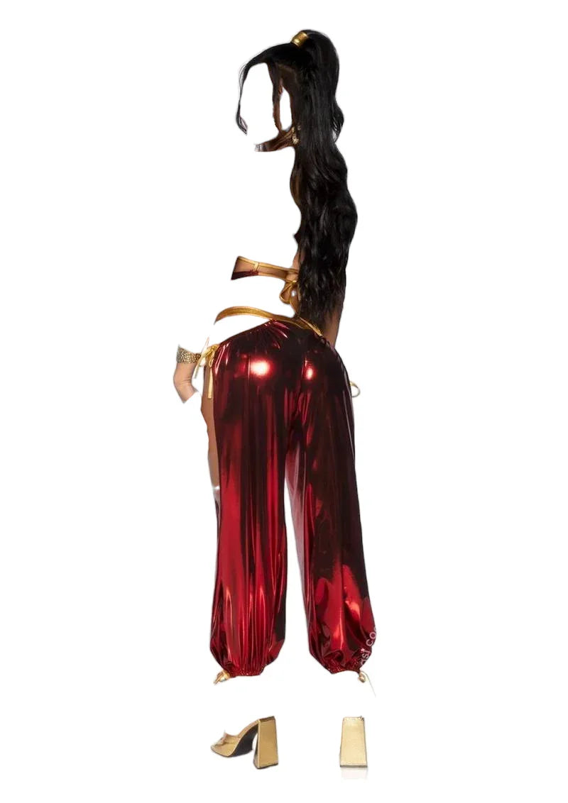 Leg Avenue 2 PC Ruby Desert Princess Lame Bikini Top and Split Leg Cut-Out Harem Pants Red