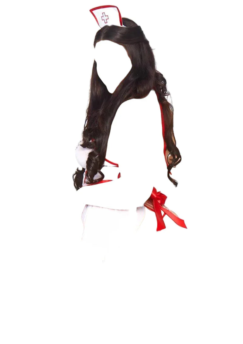 • Practice your bedside manner in the 3 PC sexy plus size lingerie roleplay set by Leg Avenue, featuring an apron tie-back babydoll chemise, plunging deep-v neckline, halter neck, cross accents, g-string panty, and matching hat headband.
