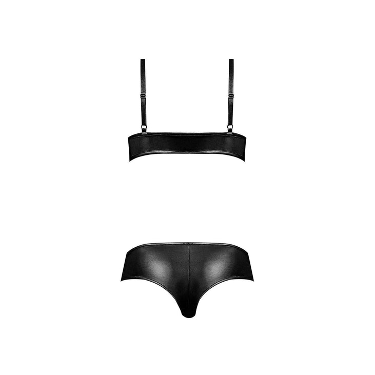 Magic Silk Lust Fetish Electra Leather Look Peephole Bra & Shorts Black
