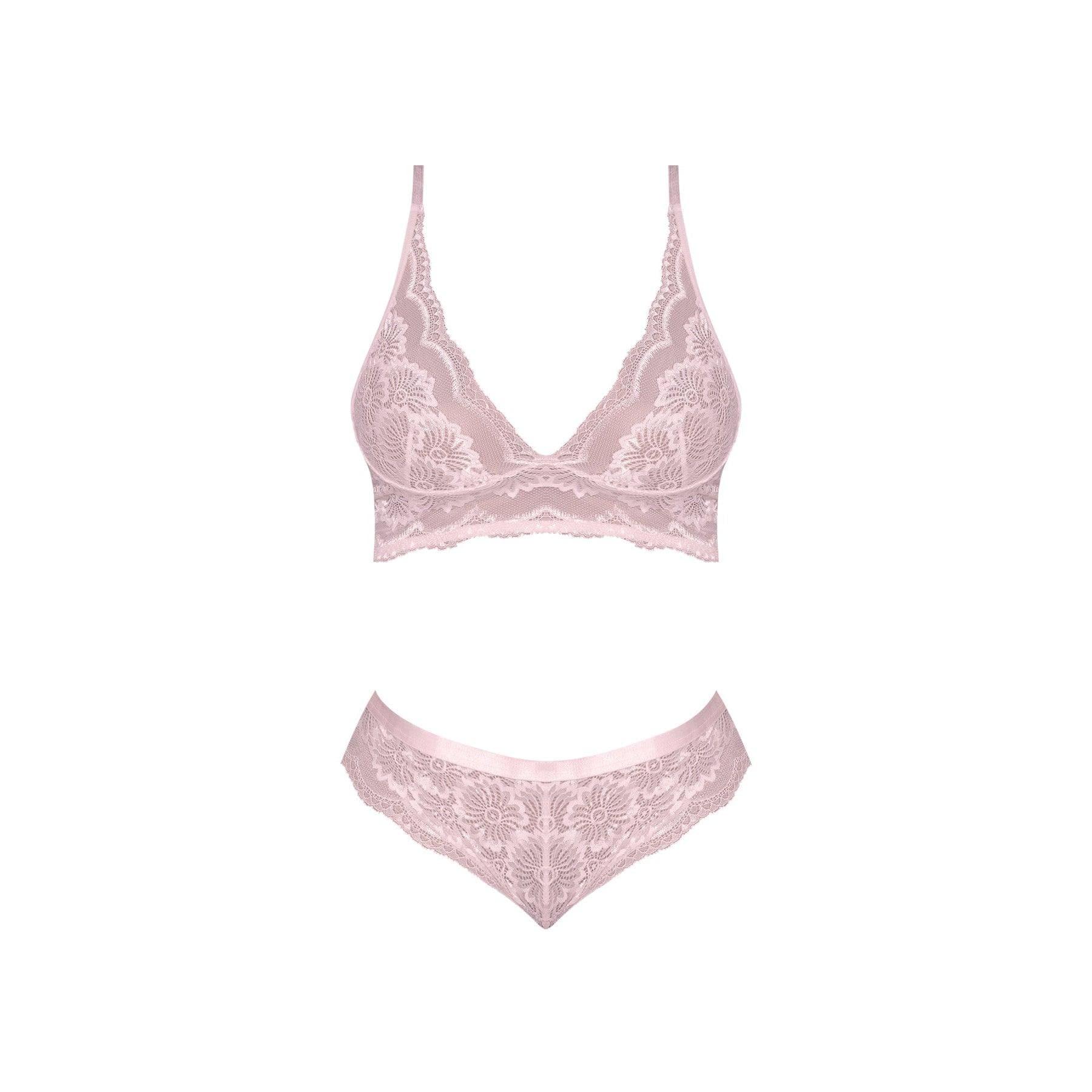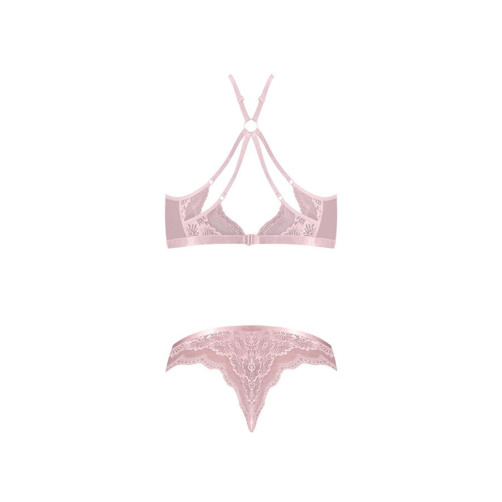 Soft floral lace is paired with ribbon-like straps in a wash of creamy blush.
