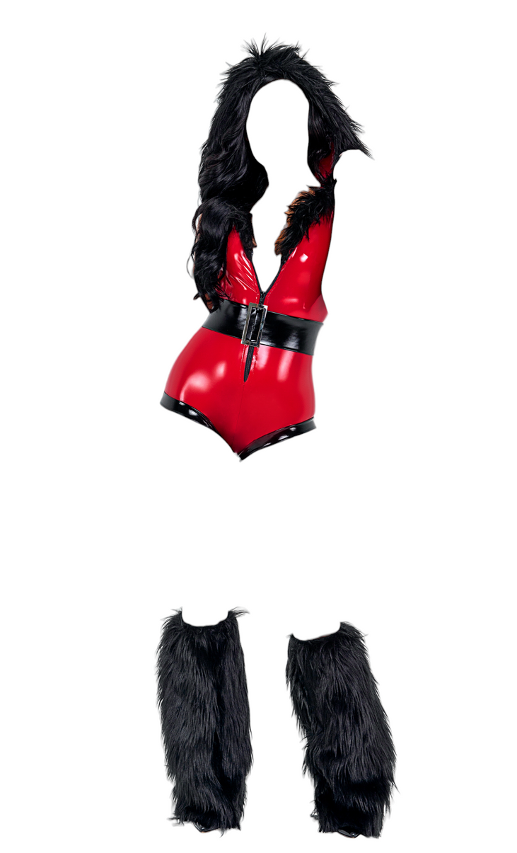 Roma Costume 2 PC Santa Honey Vinyl Romper Red/Black