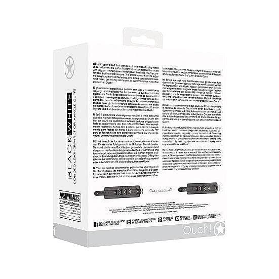 • Looking for a cuff that can do it all and is made to play hard? Look no further. The cuffs of Ouch! Black & White Collection have quality leather straps with elegant stitching down the length of the straps. They're comfortable but incredibly secure. The straps have 6 holes to adjust the length with metal fastenings and D-ring connectors to connect them. Use this toy on its own, or in combination with other products of Ouch!
